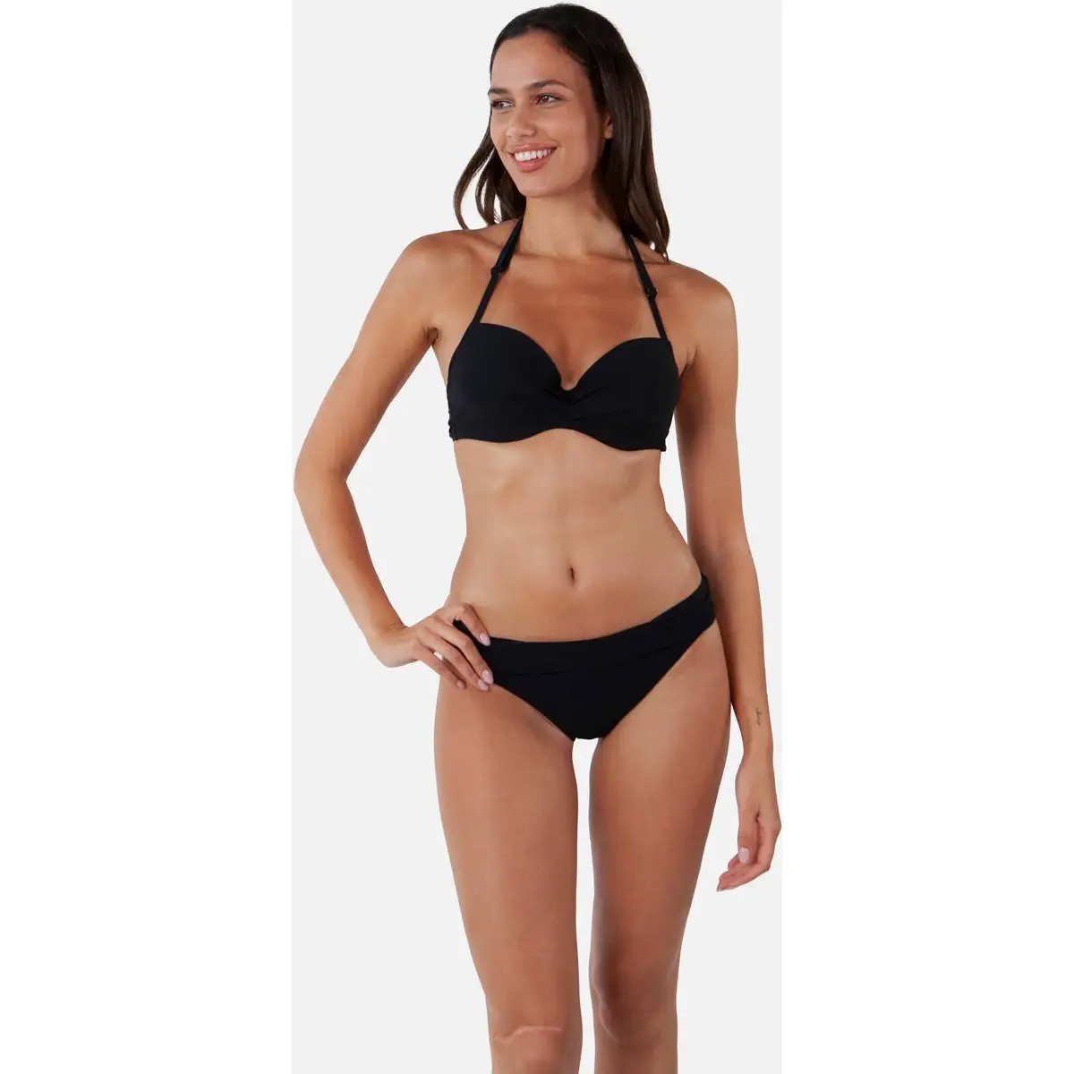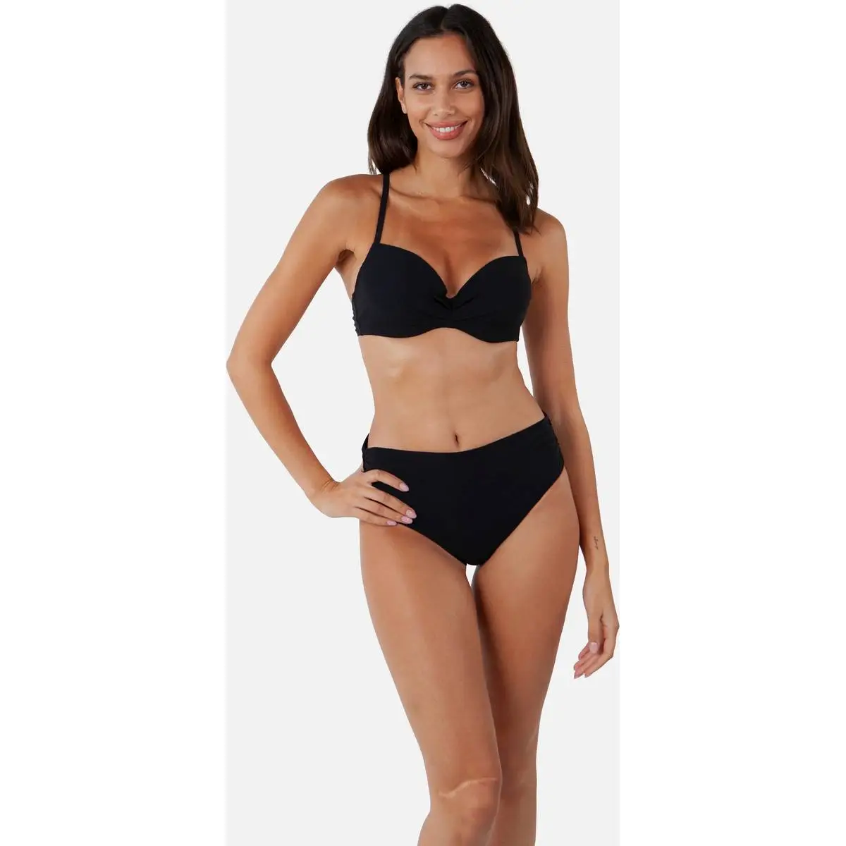 Der Solid Slip mit hohem Bund ist ein gefütterter Bikinislip mit gerafften Seitennähten. Der Slip hat einen hohen Bund und eine klassische Passform. Kann auch für einen normalen Bund gefaltet werden. Mix & Match mit Ihrem Lieblingsbikinioberteil von BARTS.